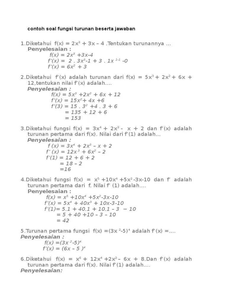 Beberapa contoh soal di bawah dapat sobat idschool gunakan untuk. Kupas tuntas skl matematika 2018/2019materi 11:aplikasiturunan1.indikatormenyelesaikan soal aplikasi turunan fungsi2.ringkasanmateriaplikasi turunan fungsia . Teorema turunan fungsi trigonometri berikut akan sangat berguna dalam menyelesaikan persoalan turunan di. Doc soal dan pembahasan aplikasi turunan fungsi firda nur azizah academia edu semoga bermanfaat untuk dijadikan. Menentukan penyelesaian dari soal aplikasi turunan fungsi.